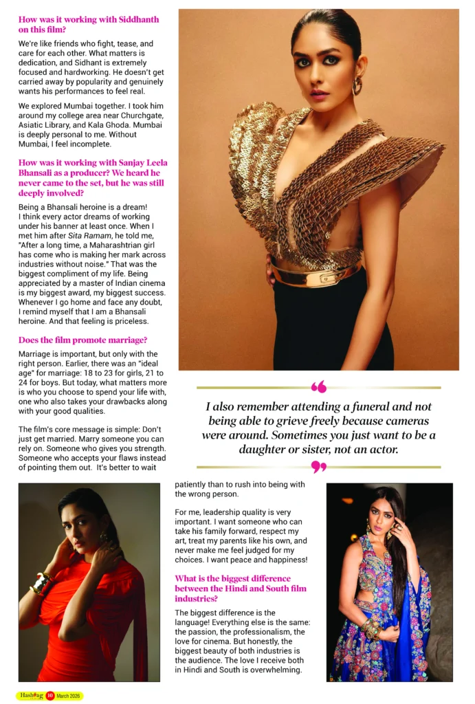 Being a Bhansali heroine is a dream! I think every actor dreams of working under his banner at least once. When I met him after Sita Ramam, he told me, “After a long time, a Maharashtrian girl has come who is making her mark across industries without noise.” That was the biggest compliment of my life. Being appreciated by a master of Indian cinema is my biggest award, my biggest success. Whenever I go home and face any doubt, I remind myself that I am a Bhansali heroine. And that feeling is priceless.