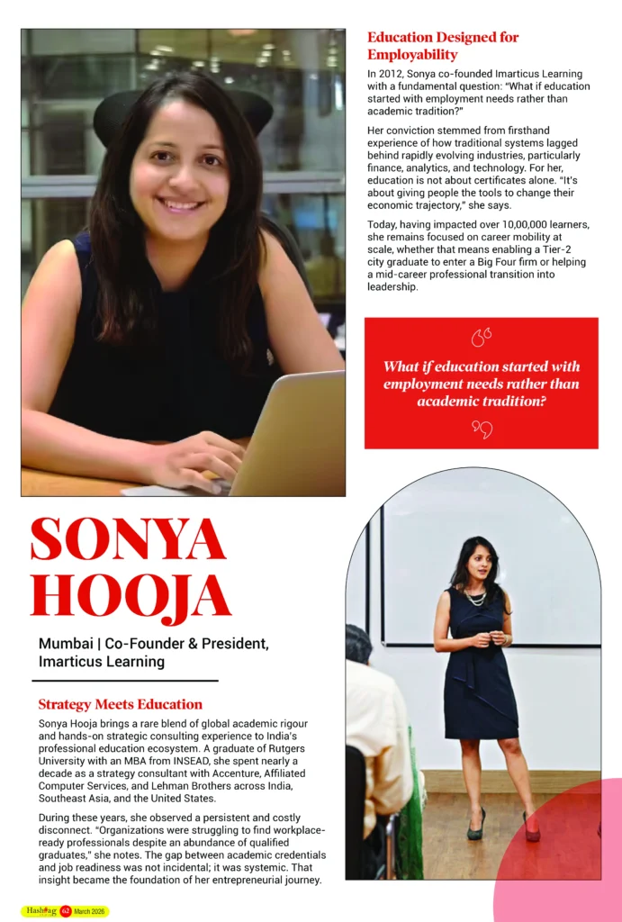 In 2012, Sonya co-founded Imarticus Learning with a fundamental question: “What if education started with employment needs rather than academic tradition?”