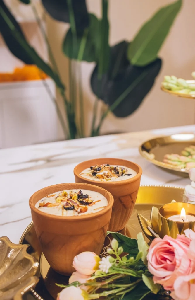 This payasam brings a distinctly South Indian flavour to the Diwali table rich with coconut milk, sweetened with jaggery, and finished with roasted cashews and cardamom. It’s my way of blending Southern tradition with the Northern sparkle of the Festival of Lights.