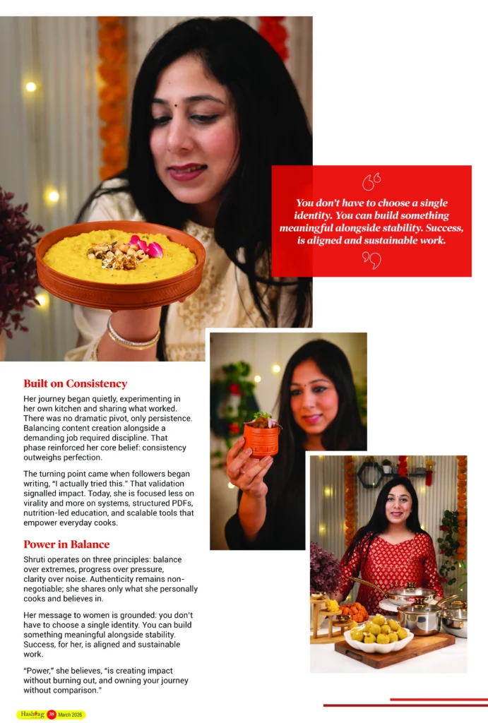 Her journey began quietly, experimenting in her own kitchen and sharing what worked. There was no dramatic pivot, only persistence. Balancing content creation alongside a demanding job required discipline. That phase reinforced her core belief: consistency outweighs perfection.